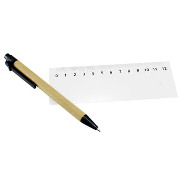 Memo Set Ecológico con Bolígrafo Ecológico escritura negra, Regla 12 cm, notas y banderitas adhesivas. Incluye 300 notas adhesivas cuadradas + 750 banderitas adhesivas de colores