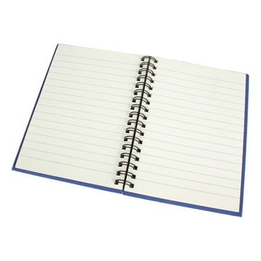 Cuaderno tamaño A5, con tapas de cartón forrado de 650gsm, con 100 hojas blancas con cuadriculado de 5×5 mm. y anillado metálico doble cero.